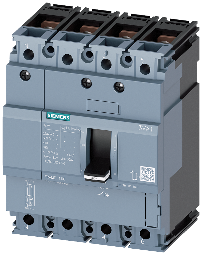 Interruptor automático 3VA1 IEC, Frame 160, clase de poder de corte N, Icu = 25 kA a 415 V